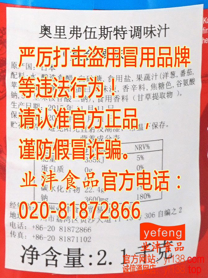 急汁(神户) 1.8L★原装进口★奥里弗伍斯特调味汁/神户急汁喼汁
